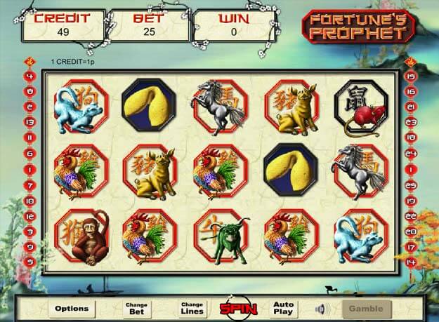 The theme of Fortunes Prophet slots game takes inspiration from Chinese culture, more specifically, the Chinese zodiac. That means all of the animals are in play as symbols. There’s the cat, horse, monkey, dog, chicken and more. The fortune cookie symbol is the games wild.