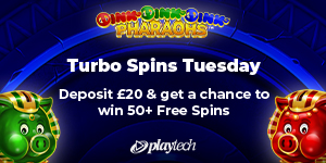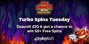 Get ready for Turbo Spins Tuesday, our brand-new weekly promotion where you can win 50+ Free Spins on a different thrilling game every Tuesday between 6 PM & 11:59 PM.