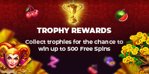 Claim free spins for every 5 trophies collected. Free Spins winnings are credited as Bonus. 65x wagering requirements, max bonus conversion to real funds equal to lifetime deposits (up to £250) full T&Cs apply.